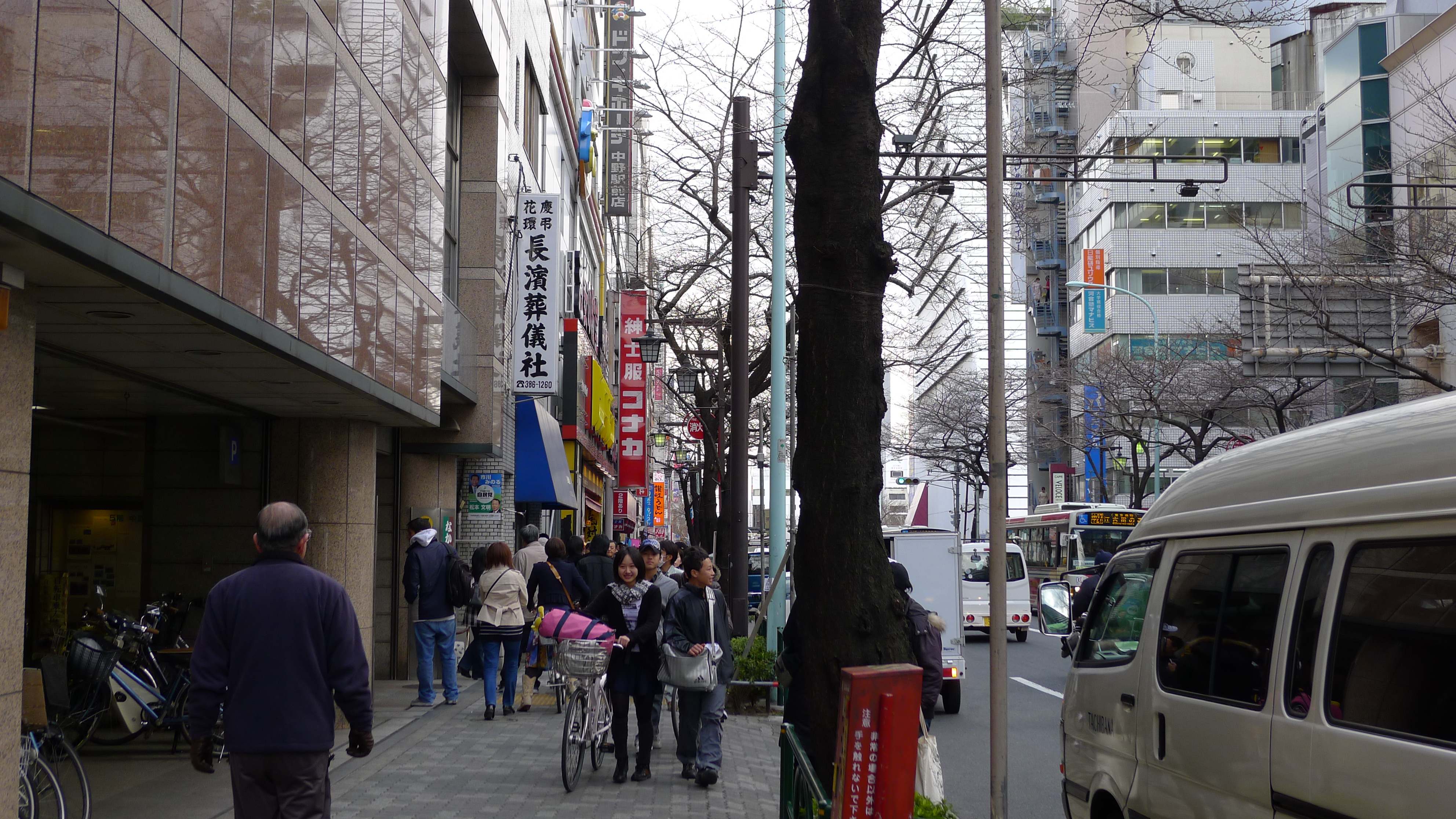 幸好中野離新宿頗近, 有公車可以到新宿西口! 於是我們也去等公車,