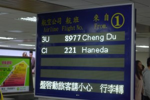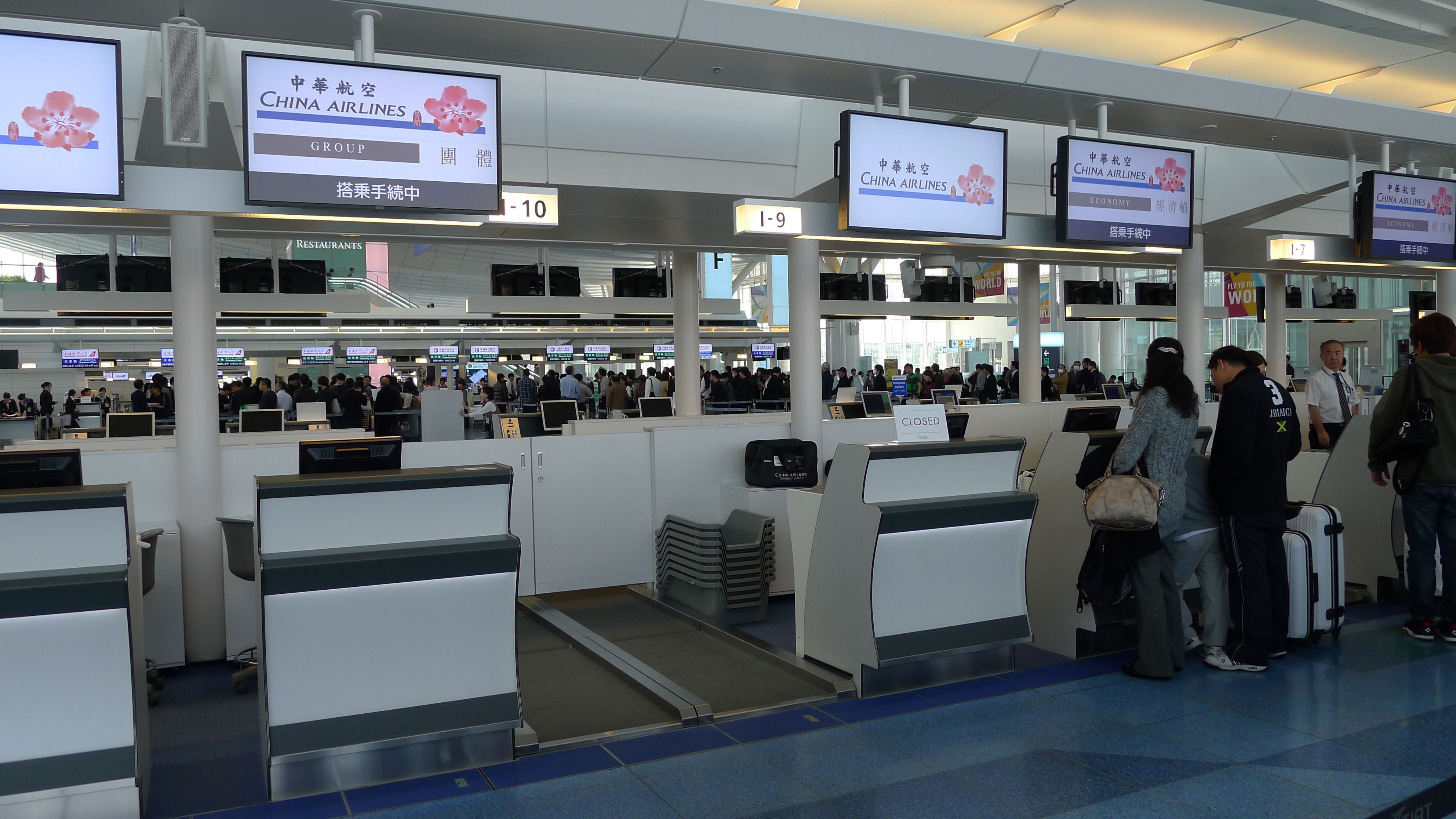 把票拿給運務員看之後, 他會問你要去過內線還是國際線, 然後幫你把行李貼上條子, 國際線和國內線條子顏色有區分,