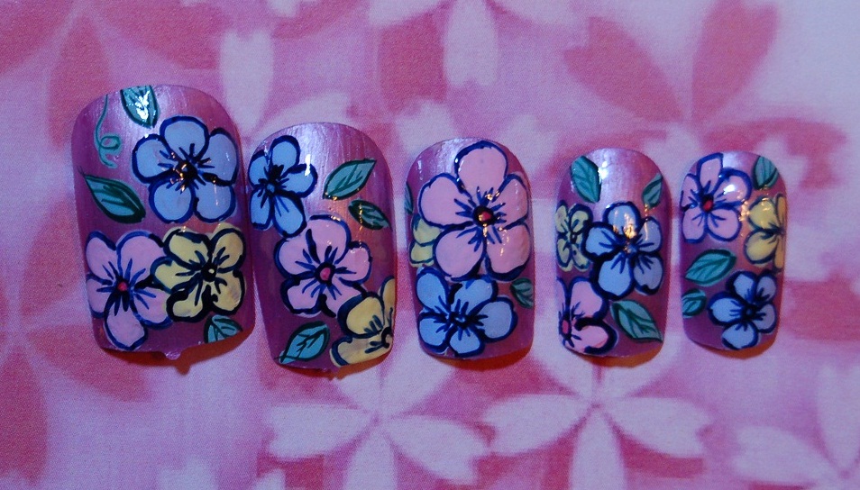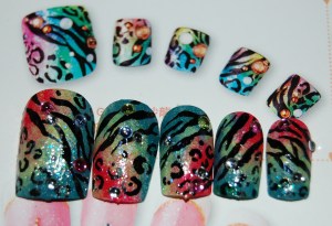 這週學了法式上色, 璀璨上色, 扶桑花, 櫻花, 豹紋, 斑馬紋, 貼鑽